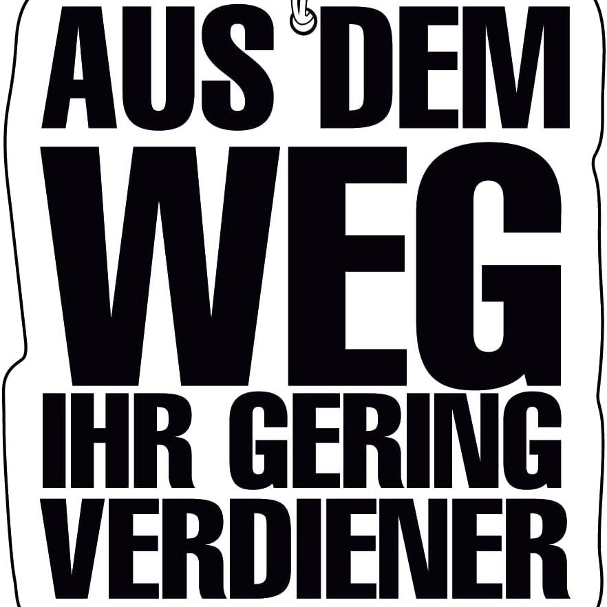 Der „Aus dem Weg Geringverdiener“ Duftbaum besticht durch hochwertigen Druck und robustes Material, das für eine lange Lebensdauer sorgt. Selbst nach längerem Gebrauch bleibt das Motiv farbintensiv und stabil. Ideal für alle, die Humor und Funktionalität im Auto kombinieren möchten.