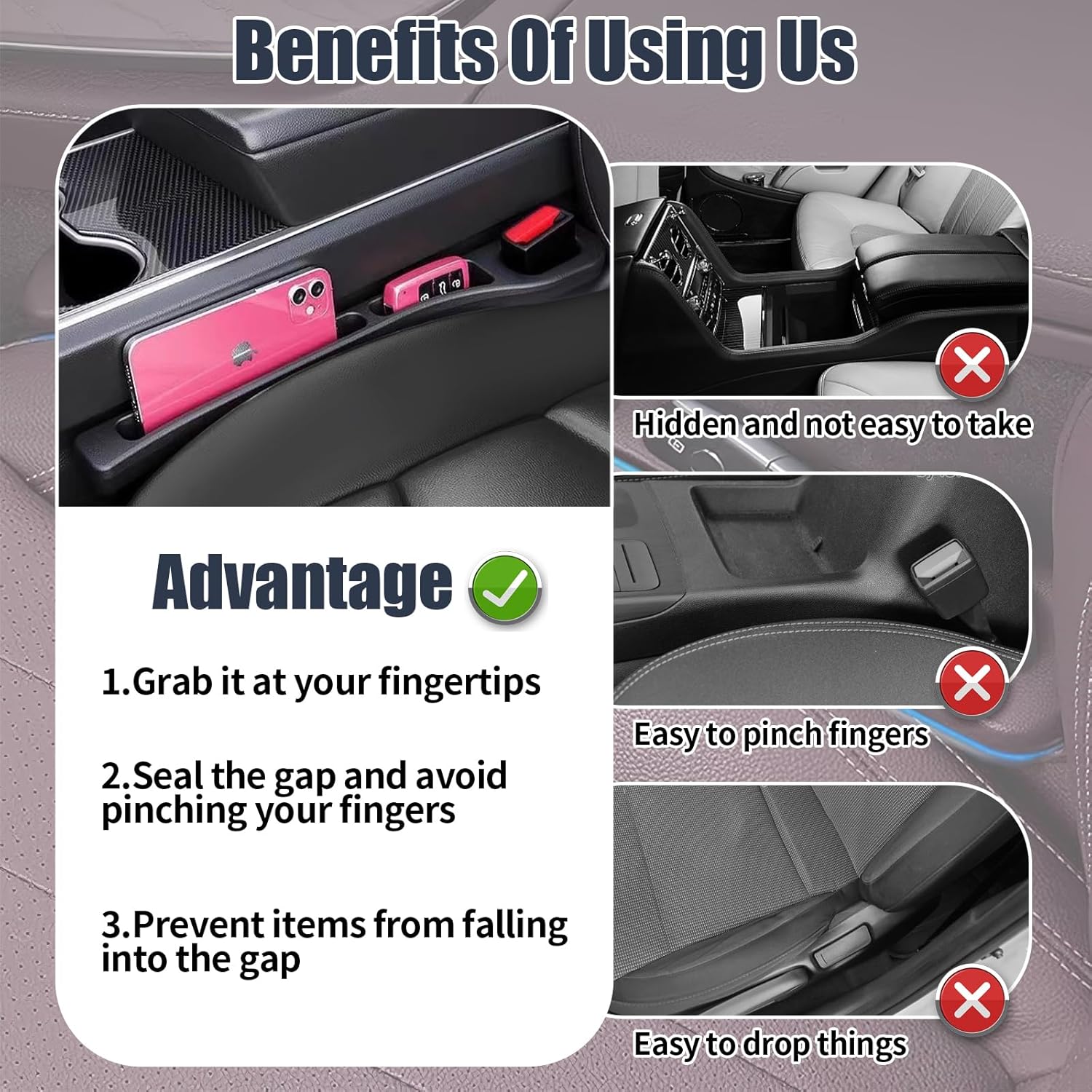 Verabschieden Sie sich von verlorenen Schlüsseln, Münzen oder Handys, die zwischen Sitz und Mittelkonsole verschwinden. Der AYSYR Lückenfüller sorgt dafür, dass keine Gegenstände mehr in die Ritzen rutschen, und bietet zugleich praktische Ablageflächen für Ihre Essentials. Egal, welche diese auch sein mögen, alles findet seinen Platz. Perfekt für alle, die Wert auf Sauberkeit, Ordnung und Sicherheit im Auto legen.