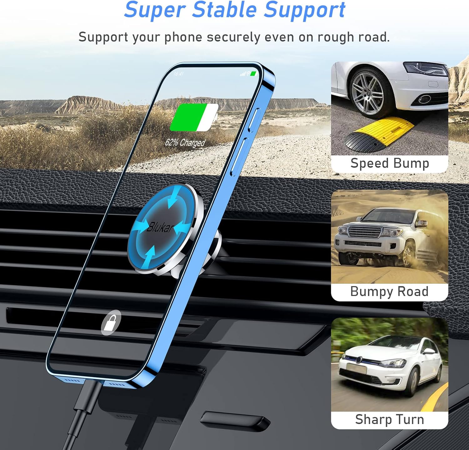 Halten Sie Ihr Smartphone sicher und griffbereit während der Fahrt! Die Blukar magnetische Handyhalterung für Lüftungsschlitze bietet maximale Stabilität, flexible Ausrichtung und volle Kompatibilität für iPhone, Samsung Galaxy, Huawei und andere Smartphones.