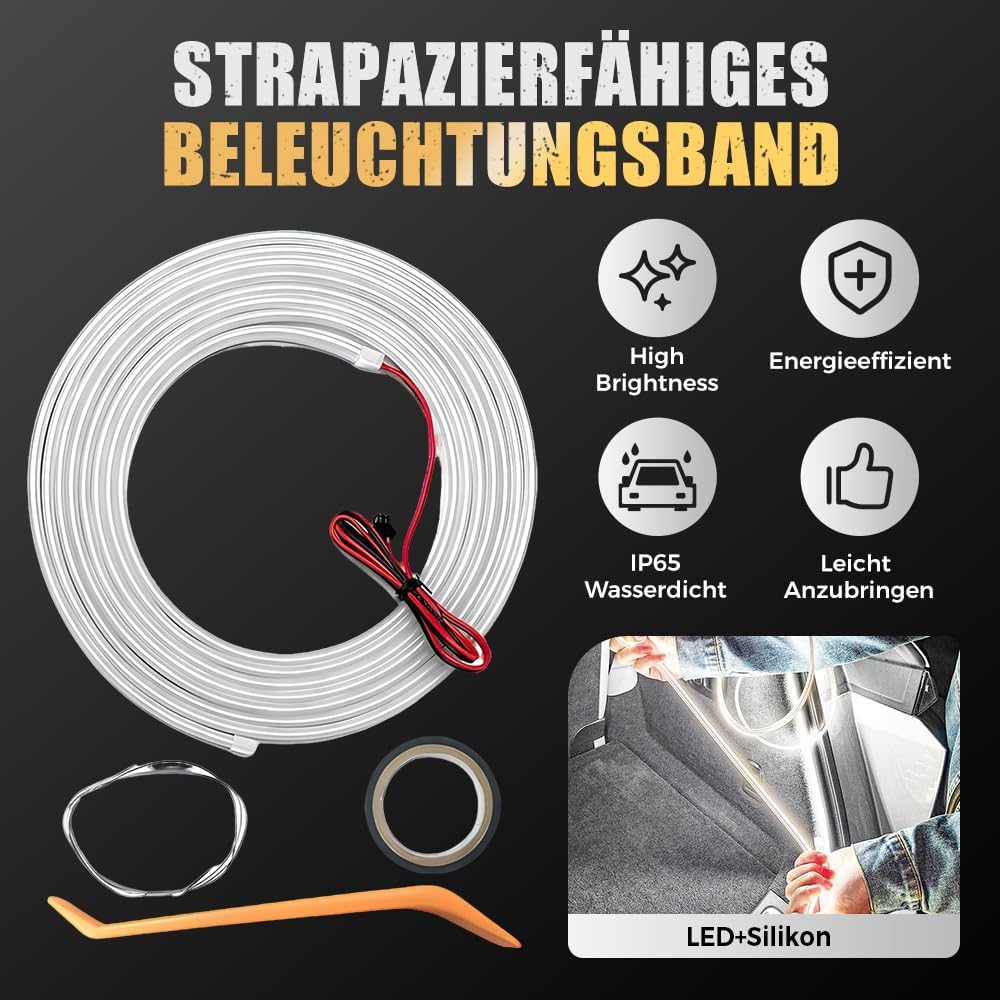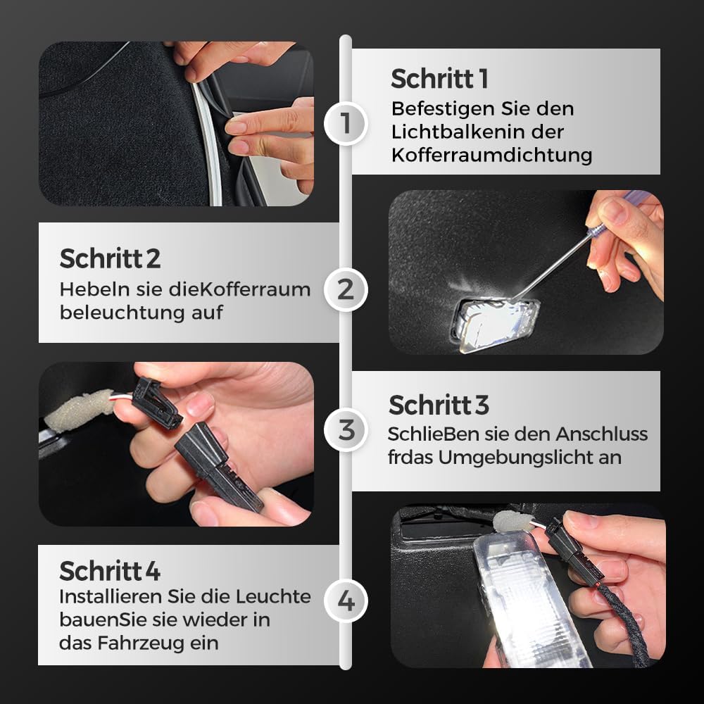 Ideal für alle Fahrzeugbesitzer, die ihren Kofferraum funktionaler und stilvoller gestalten möchten. Das warme LED-Licht schafft eine elegante Atmosphäre, erleichtert das Auffinden von Gegenständen und ist gleichzeitig ein attraktives Upgrade für jeden Pkw.