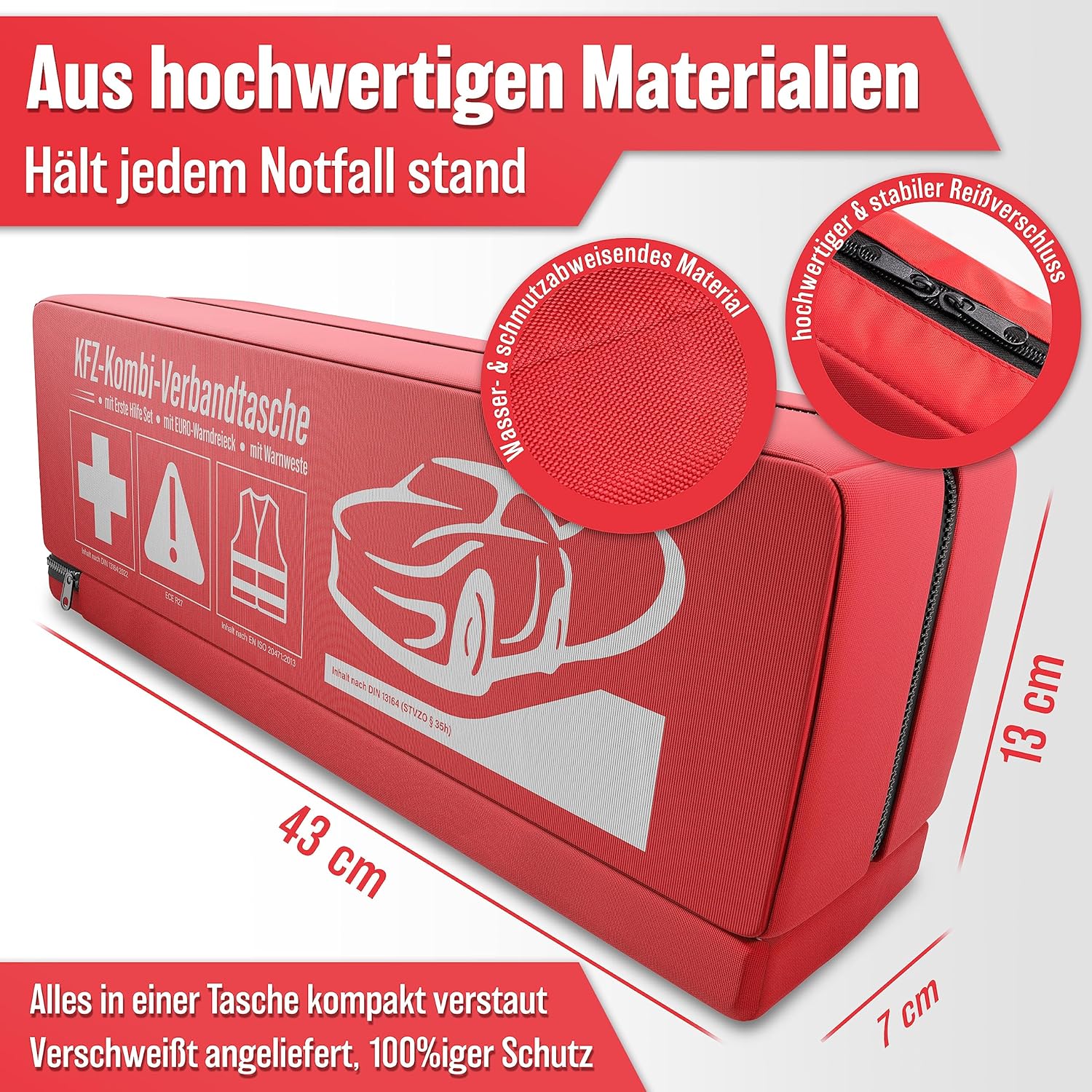 🚑 HELDENWERK® KFZ Kombitasche (3-in-1) – Verbandskasten, Warndreieck & Warnweste nach Norm 2025