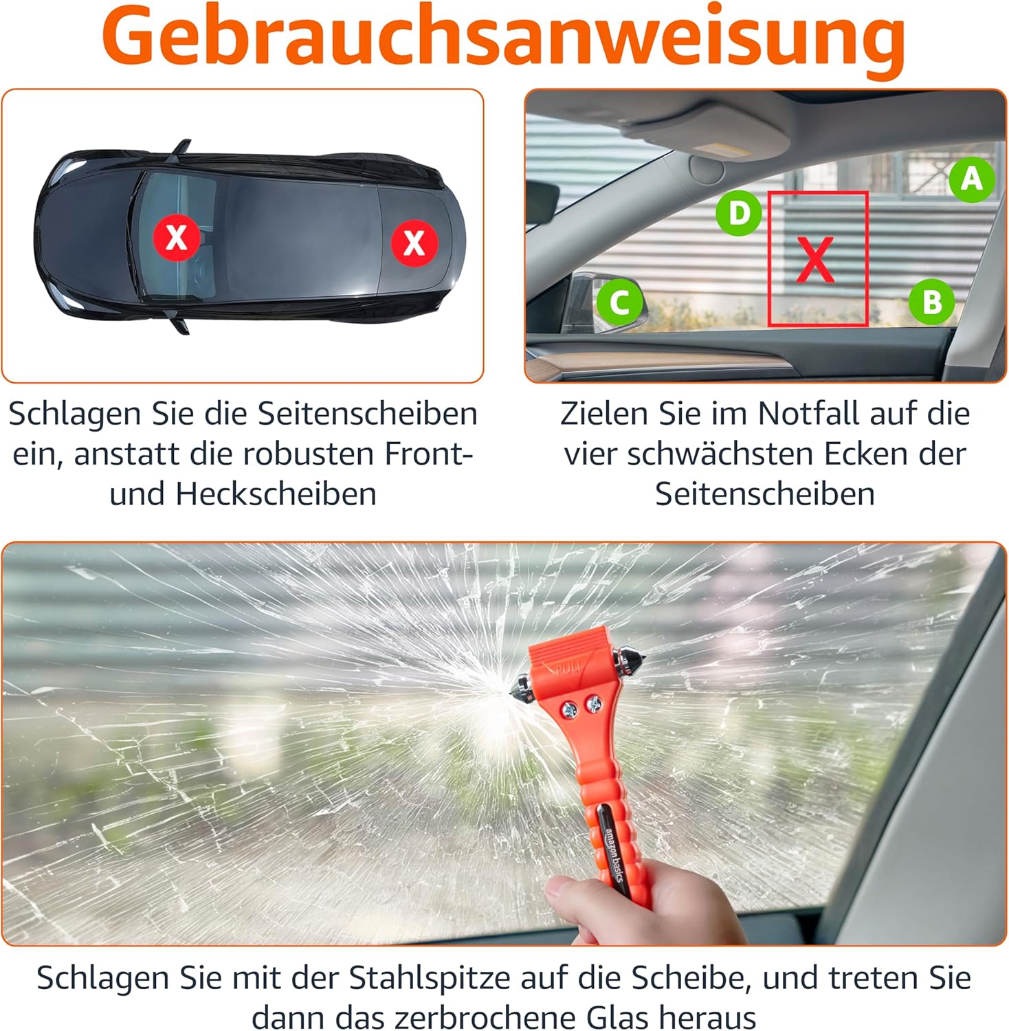 Dieses Notfallhammer-Set kombiniert Fensterhammer und Gurtschneider in einem handlichen Tool. Ideal, um im Ernstfall schnell und sicher aus dem Fahrzeug zu entkommen.