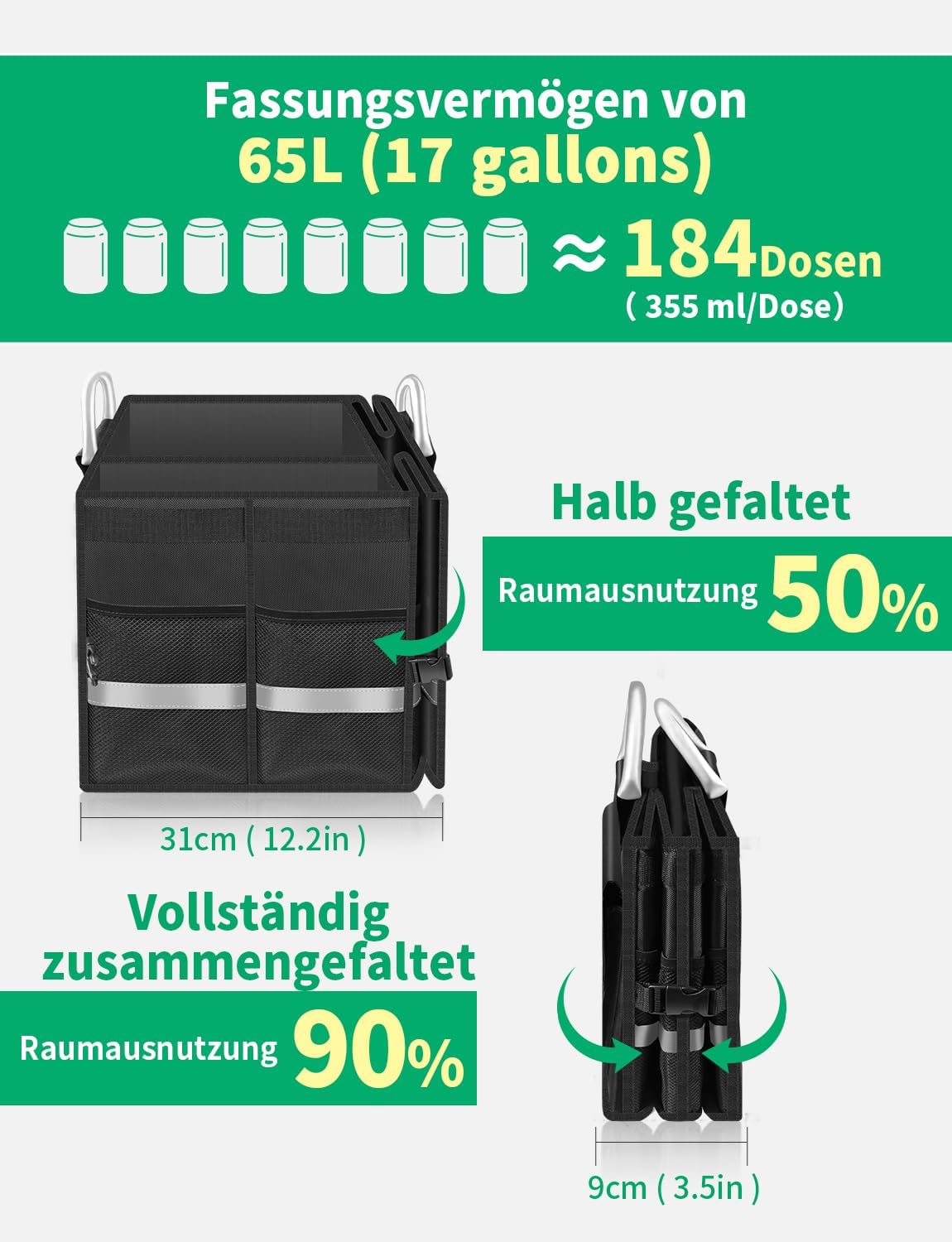 OASSER Kofferraum Organizer: Deckel, Alu-Griffe & Reflexstreifen