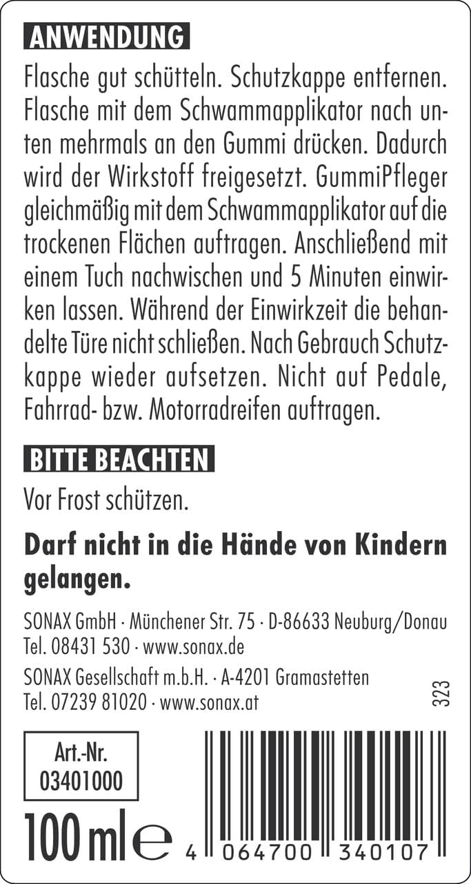 Der SONAX GummiPfleger reinigt und pflegt alle Gummidichtungen am Auto – von Türen und Scheiben über Kofferraumdeckel bis zu Schiebedächern und Cabriodächern.