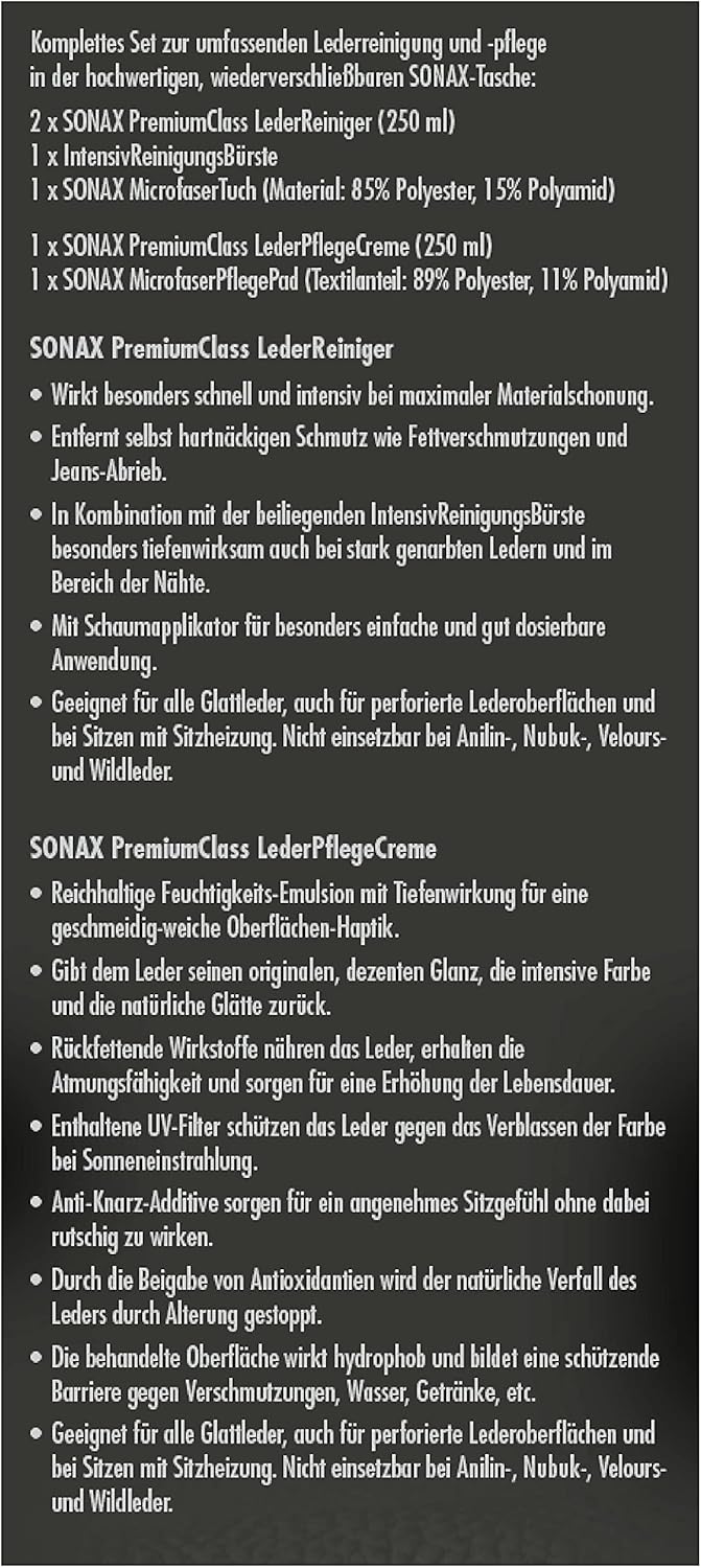 SONAX PREMIUM CLASS LederPflegeSet – Komplettset für Reinigung & Pflege von Glattleder
