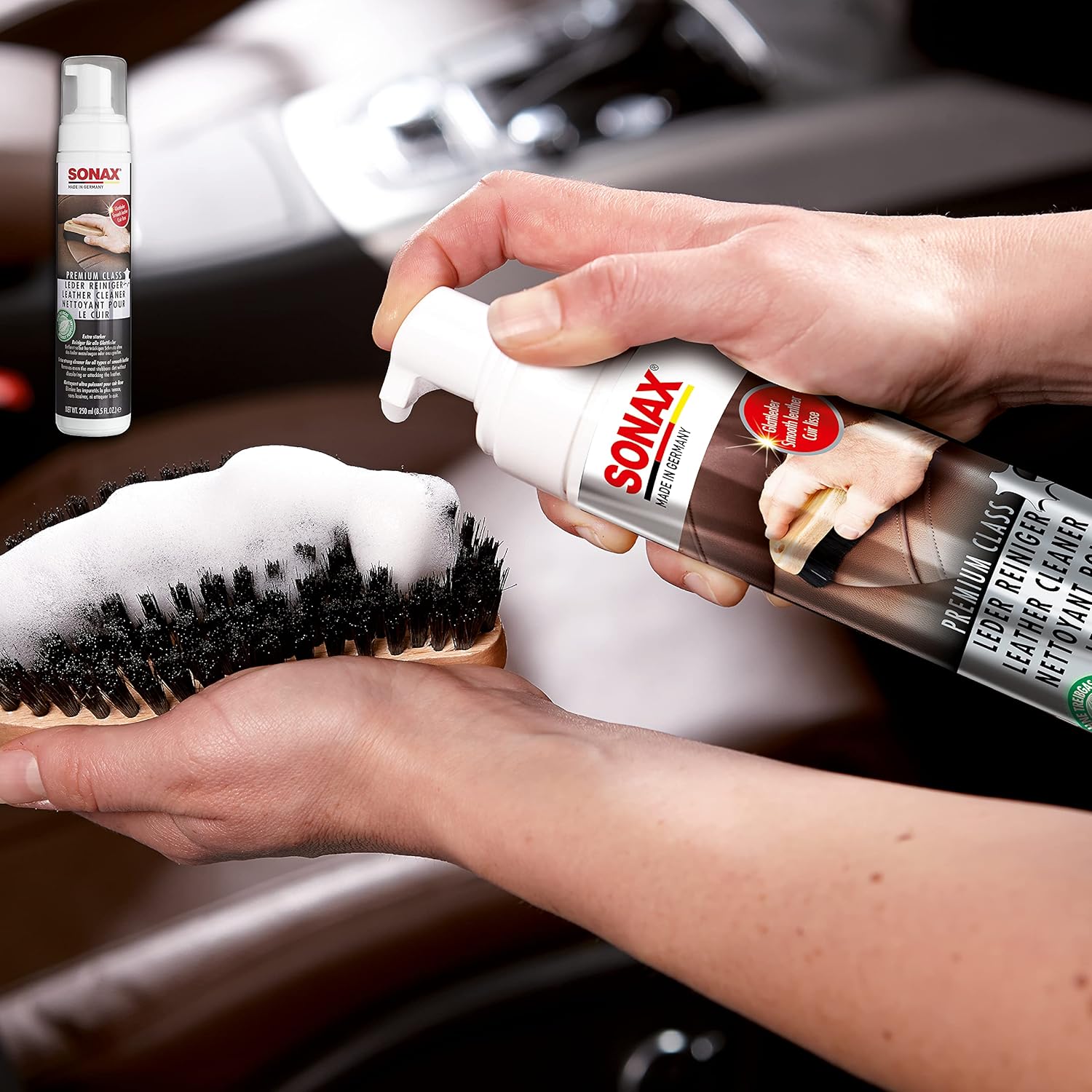Das SONAX PREMIUM CLASS LederPflegeSet (3x 250 ml) ist die perfekte Lösung für die gründliche Reinigung und intensive Pflege von Ledersitzen, Autoinnenausstattung und allen glatten Lederflächen im Haushalt. Mit hochwertigen Reinigern, einer pflegenden Creme und praktischem Zubehör sorgt dieses Set dafür, dass Ihr Leder langfristig geschmeidig, gepflegt und geschützt bleibt.