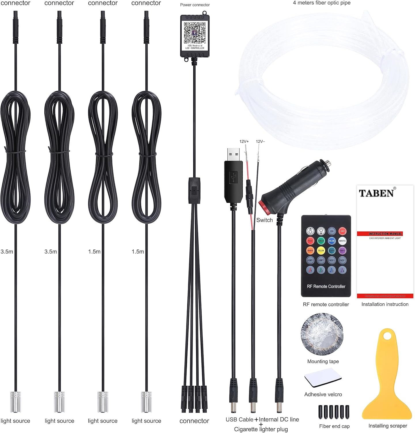 🌈 TABEN RGB Umgebungslicht für Autos – Glasfaser Ambientebeleuchtung mit APP & Fernbedienung 🚘✨