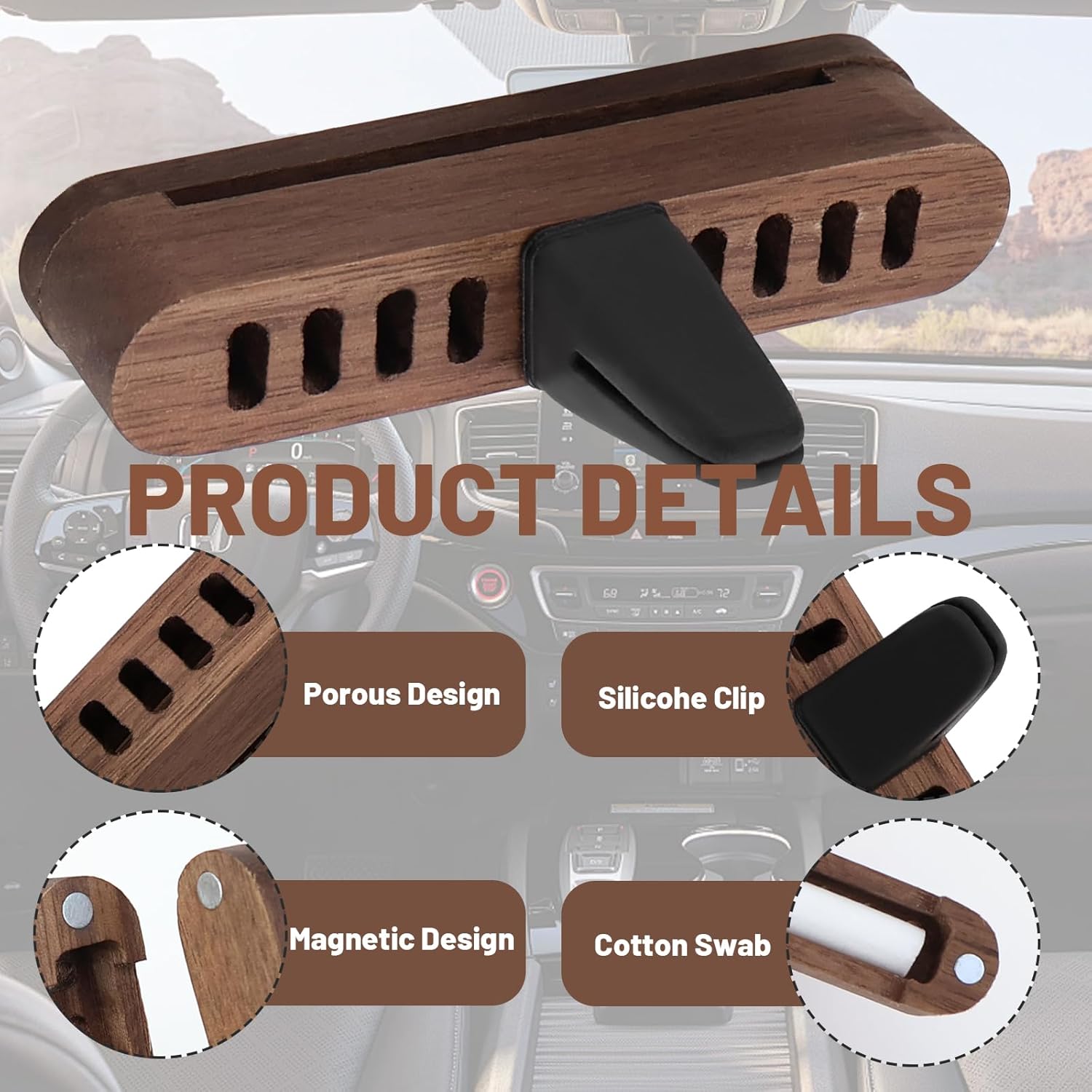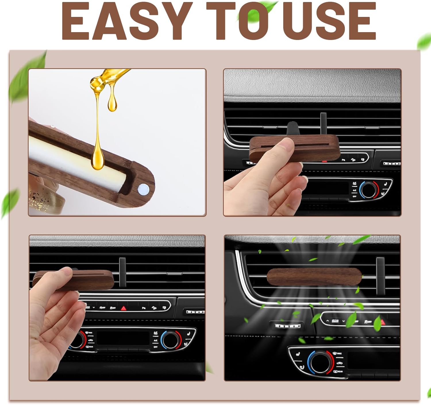 🌿 2x Auto Lufterfrischer Diffuser – Holz Auto Parfüm mit 8 Nachfüllpads