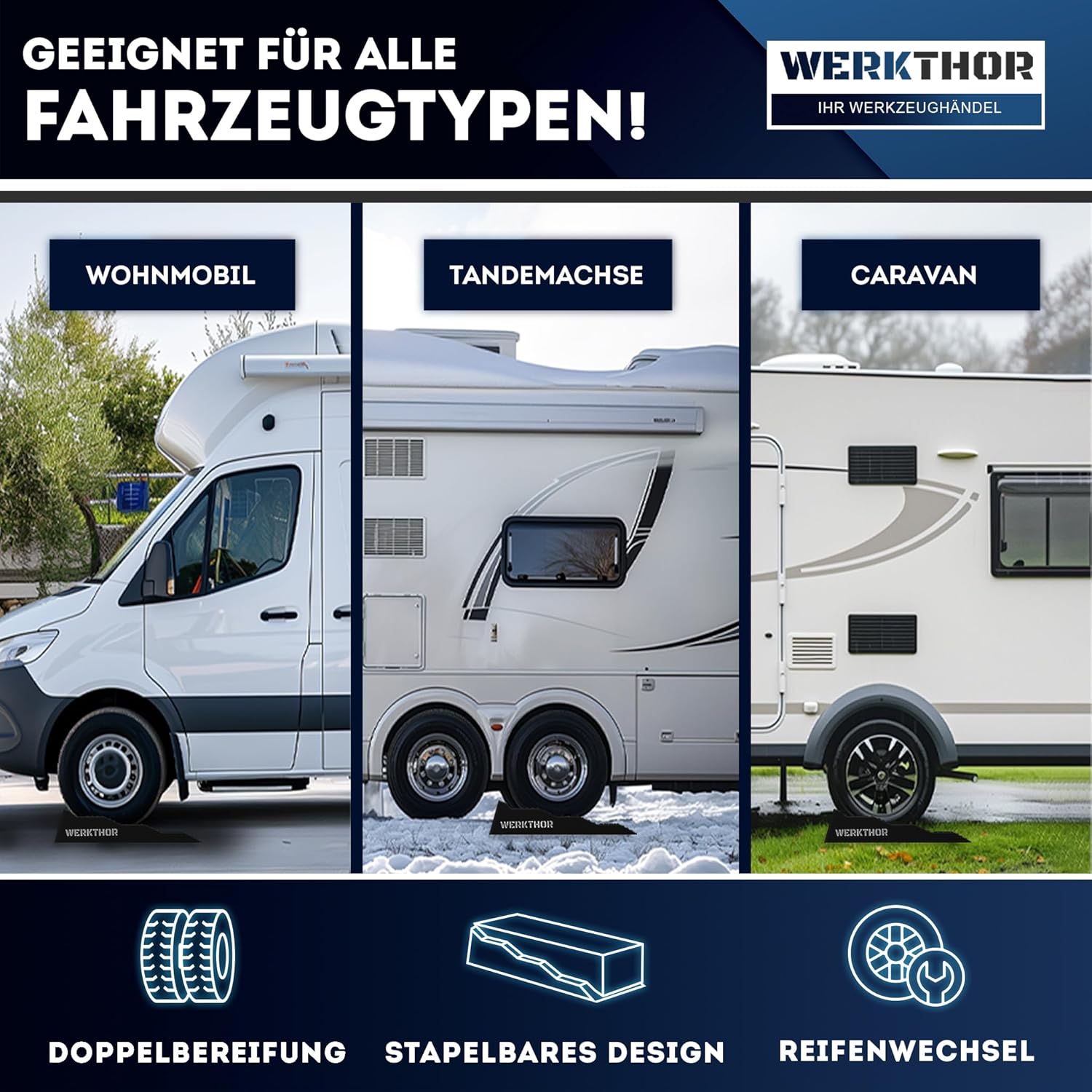 WERKTHOR Auffahrkeile – Stabile & sichere Nivellierung für Wohnmobil, Caravan & Wohnwagen